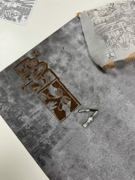 Le début du quatrième semestre de DSAA est toujours une période particulière lors de laquelle approches théoriques et pratiques trouvent leur convergence avec une plus grande acuité. Chaque année, il est proposé, par différentes techniques, de produire une image apte à catalyser et exprimer le positionnement de l’étudiant face à son sujet, image qui pourra être convoquée dans l’objet éditorial du mémoire comme dans l’expérimentation plastique du macro-projet. Cette année nos DSAA2 ont expérimenté la linogravure.